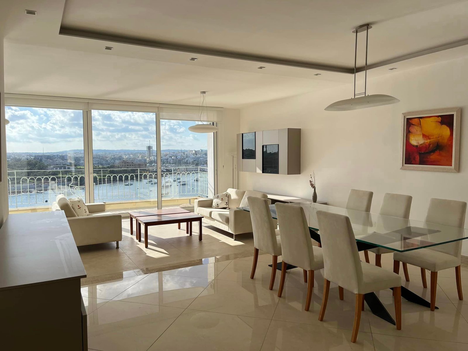 Located on the prestigious 9th floor, this designer-finished three-bedroom apartment offers a sophisticated living experience on the Sliema seafront. The residence features a spacious open-plan living and dining area, a separate high-end kitchen, and a master suite with a private ensuite. Two additional bedrooms (one twin and one single) and a modern main bathroom provide ample space for guests or a home office. The highlight of this property is the expansive terrace, which commands breathtaking views of the Mediterranean Sea and the iconic Valletta skyline. Situated close to all daily amenities and offering an optional parking space, this modern gem is not to be missed.